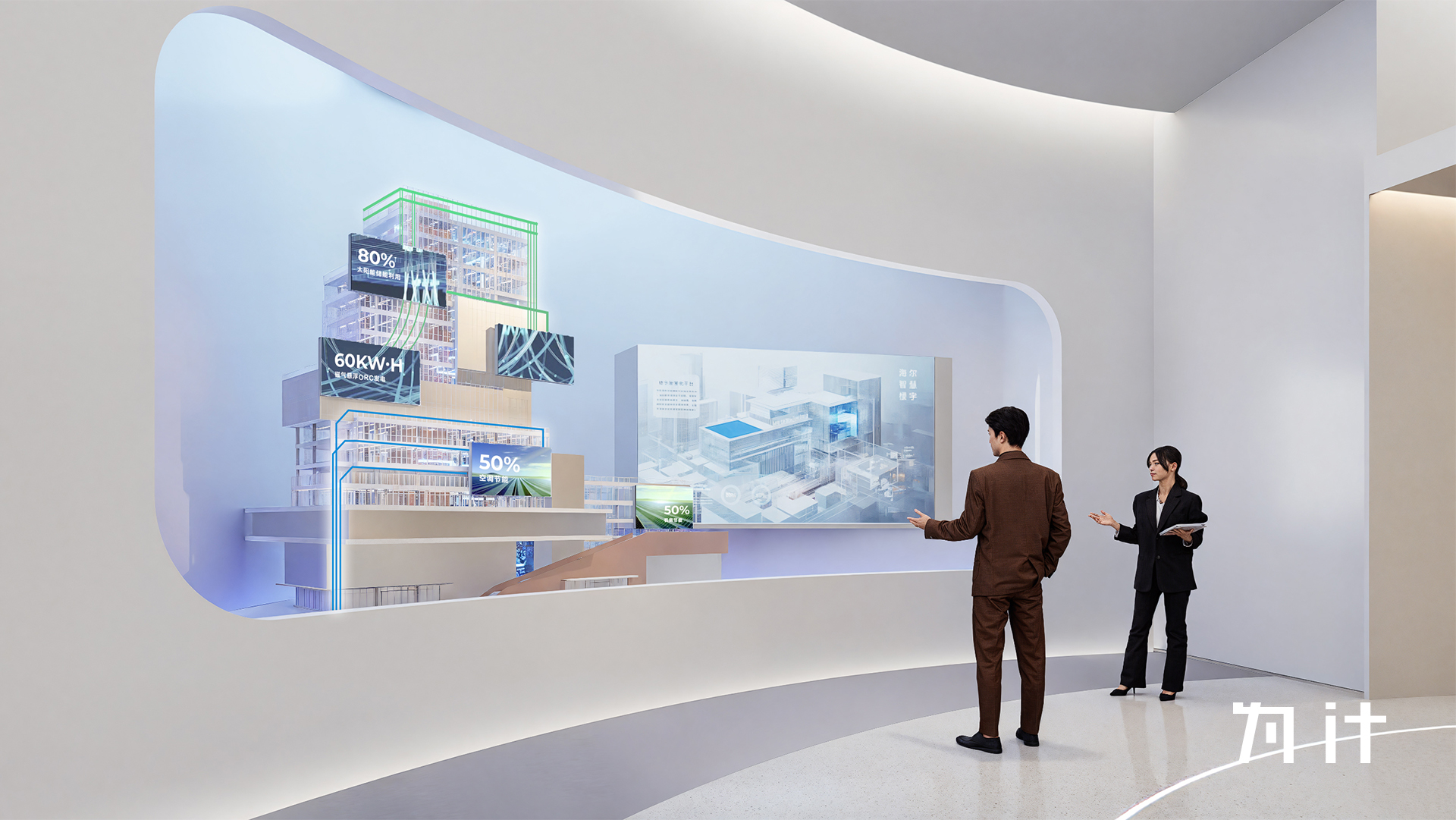 在此战略驱动下,海尔启动了全新展示中心的规划,由Uniplan主导合作,为什VISION参与了此次投标的创意概念深度共创,并担纲整体空间设计,协力将这一无界生态的未来愿景具象呈现。